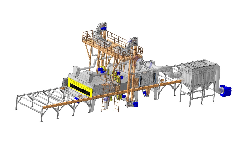 Дробеметная установка проходного типа с рольгангом обеспечивает дробеметную очистку листового и профильного металлопроката, несложных сварных металлоконструкций от окалины, ржавчины, старых окрасочных покрытий и прочих загрязнений, очистку одинаковых по форме изделий (камень, бетон) в условиях малосерийного и серийного и промышленного производства.