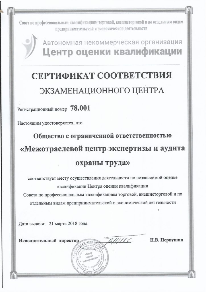 Вниманию руководителей предприятий всех форм собственности СПБ И Ленинградской области. Решением руководства Российской Торгово-Промышленной Палаты и с учетом требований о введении требований профессиональных стандартов и соответствия им сотрудников для государственных и муниципальных предприятий с 01ю01ю2019 принято реш… Читать дальшеение: Для предприятий г. Санкт-Петербурга, являющихся членами Союза Промышленников и Предпринимателей и Торгово-Промышленной палаты, муниципальных и федеральных предприятий и организаций, Профессиональных Союзов и принадлежащих им предприятий: Устанавливается скидка 70% от официальной стоимости оценки квалификации профессиональному стандарту «Специалист по охране труда» 6 уровень –в место 10000 руб, указанных на сайте АНО «Центр оценки Квалификации» -3000 рублей. Основание- Майские указы президента РФ в части обеспечения продолжительности жизни и безопасных условий труда Постановления правительства РФ в части обеспечения продолжительности трудового периода в жизни населения Требования Трудового кодекса РФ и иных нормативно-правовых актов в части касающейся Все данные организации и союзы входят в 3-х стороннюю комиссию и являются представителями государства, работодателей и работников. Срок действия настоящего распоряжения до 01.10.2018 г. Экзаменационный центр в СПб-член СПП СПб и ТПП СПб Межотраслевой центр экспертизы и аудита охраны труда. Т.(812)627-15-06;(812) 627-15-08,(812)227-49-69 Эл.почта:expert.kontrol@inbox.ru Сайт:expertkontrol.ru